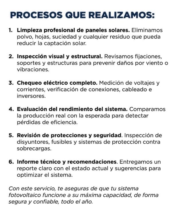 reducir la captación solar. - Inspección visual y estructural. Revisamos fijaciones,