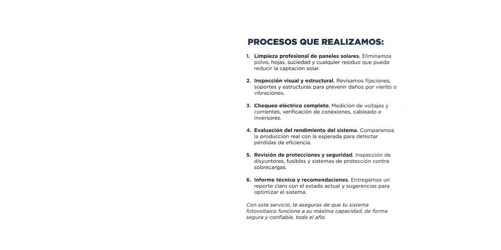 reducir la captación solar. - Inspección visual y estructural. Revisamos fijaciones,
