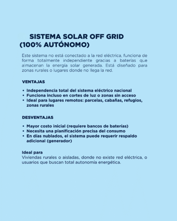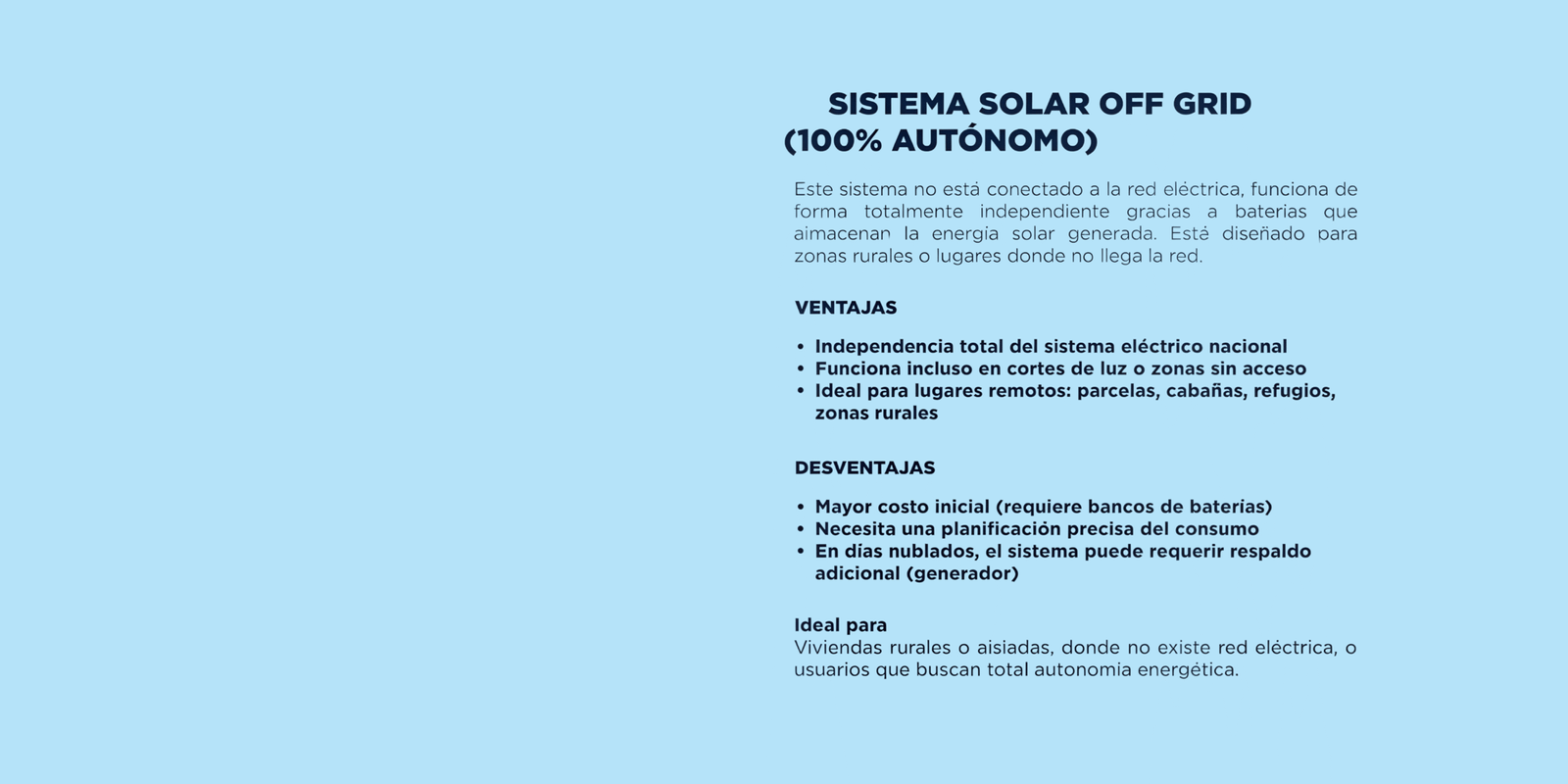 Garantiza suministro energético continuo, incluso en cortes de luz o zonas remotas.