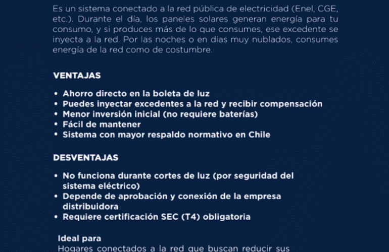 Energy Instalación de sistemas solares On Grid Ahorro en tu cuenta de luz, inyección de excedentes y menor inversión inicial. More