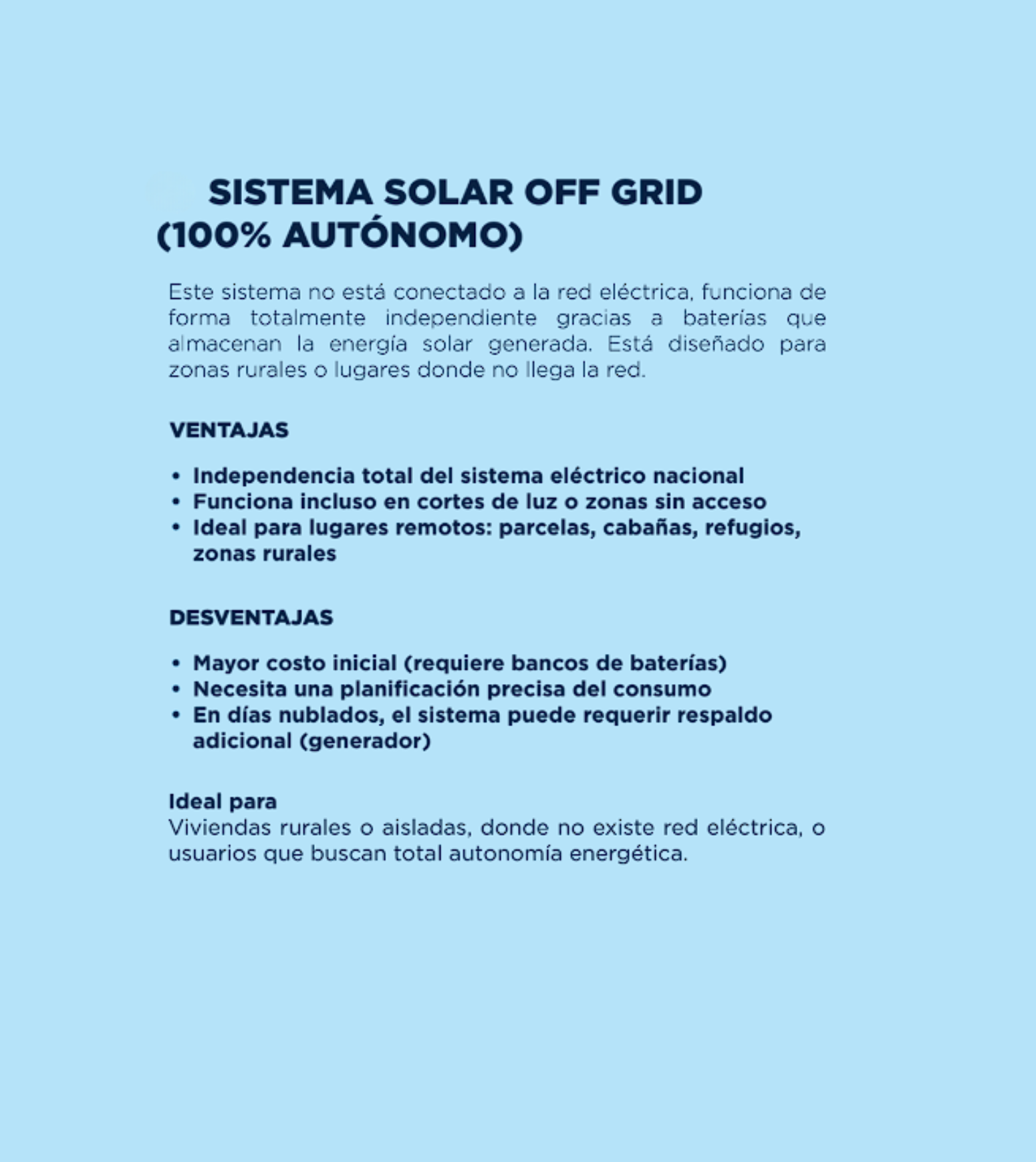 Viviendas rurales o aisladas, donde no existe red eléctrica, o